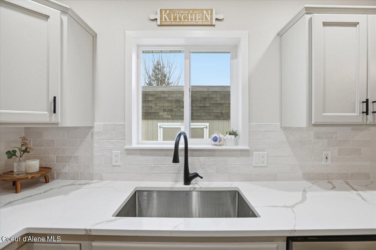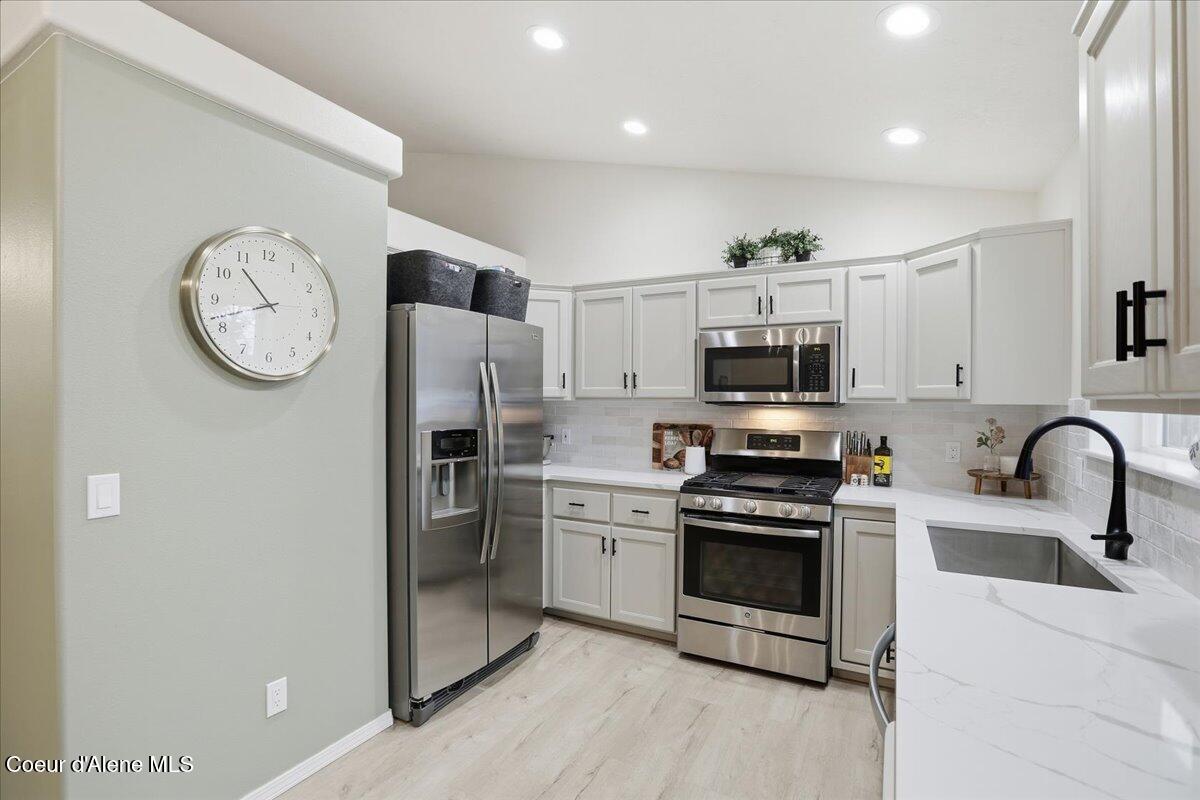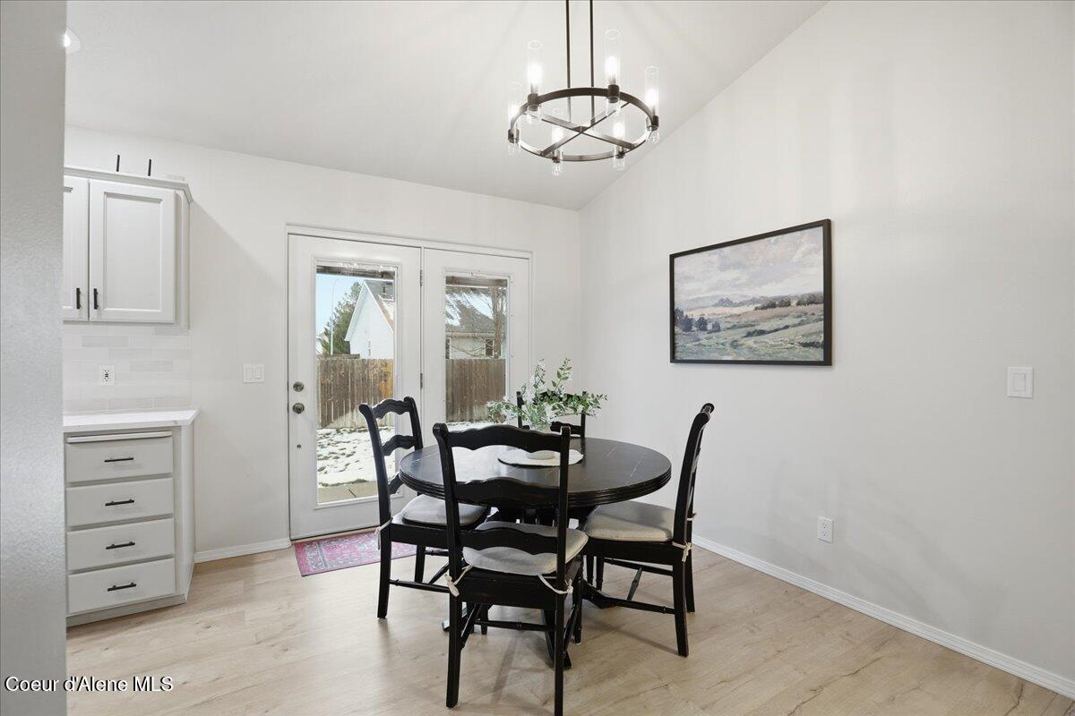 Come check out this beautifully updated single-level rancher, ideally situated in the north end of of Coeur d'Alene. This home boasts modern upgrades with an efficient layout-perfect for comfort, convenience, and everyday living. Inside you will find vaulted ceilings with carpet and LVP laminate flooring that flows throughout the home. The upgrades include; new interior paint, refinished bathroom vanities and fixtures, refinished kitchen cabinetry and new stainless steel kitchen appliances, which are all included. The dining room has French doors to the generous back patio and 10 x 20 storage/garden shed. The well-designed floor plan includes spacious bedrooms and a private primary suite, providing quiet separation and a relaxed atmosphere. Located just minutes from downtown, shopping, restaurants, parks, and Lake Coeur d'Alene, this home is a rare find in a highly sought-after neighborhood.