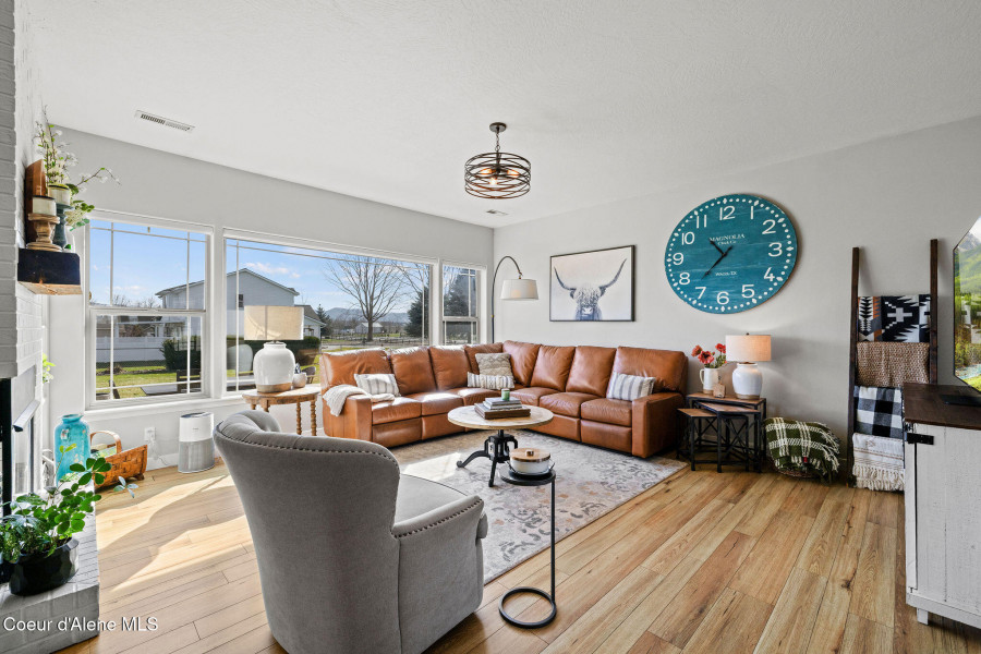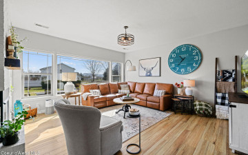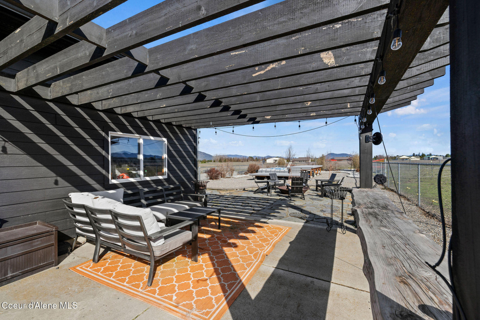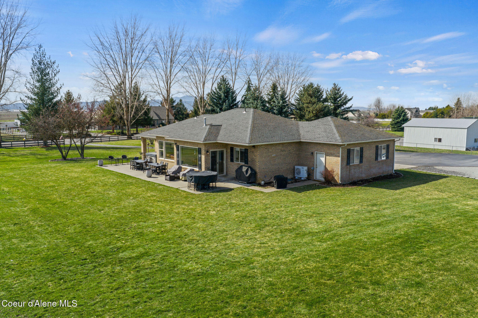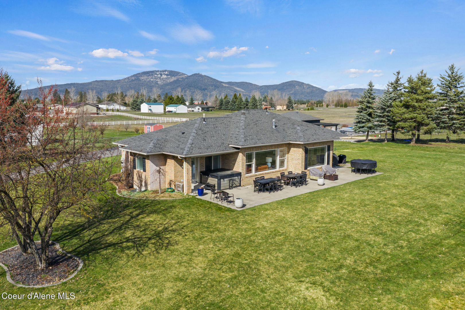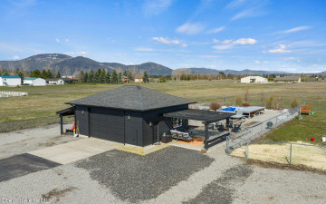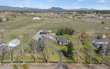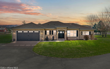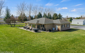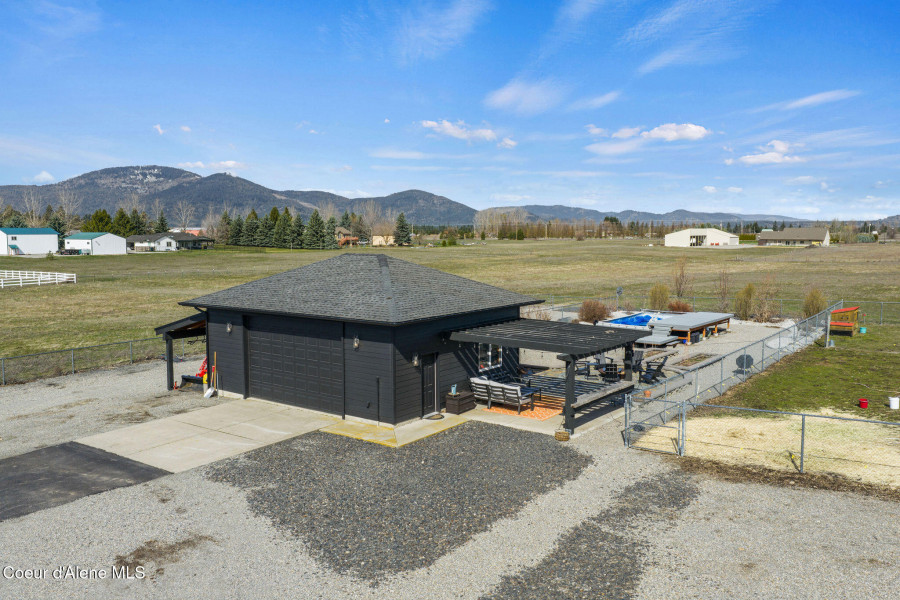 Beautifully remodeled home on nearly 5 acres with stunning mountain views and a shop -- offering the perfect blend of privacy and convenience. Just 6 minutes to Hayden and 2 minutes to Coeur d'Alene Airport, you truly get the best of North Idaho living. Designed for main-level living, this home features 3 bedrooms, 2.5 bathrooms, and a dedicated office. The spacious open kitchen includes double ovens and flows seamlessly into the living area highlighted by a double-sided gas fireplace. Comfort is maximized year-round with radiant heat, A/C, and automated blinds. The home was fully remodeled in 2018. The fully finished basement offers a massive family room complete with a pool table -- ideal for entertaining or relaxing. Outdoor living is exceptional with multiple gathering spaces: a firepit, above-ground pool with wraparound deck, pergola, outdoor bar, and hot tub -- all positioned to take in breathtaking sunsets and mountain views.