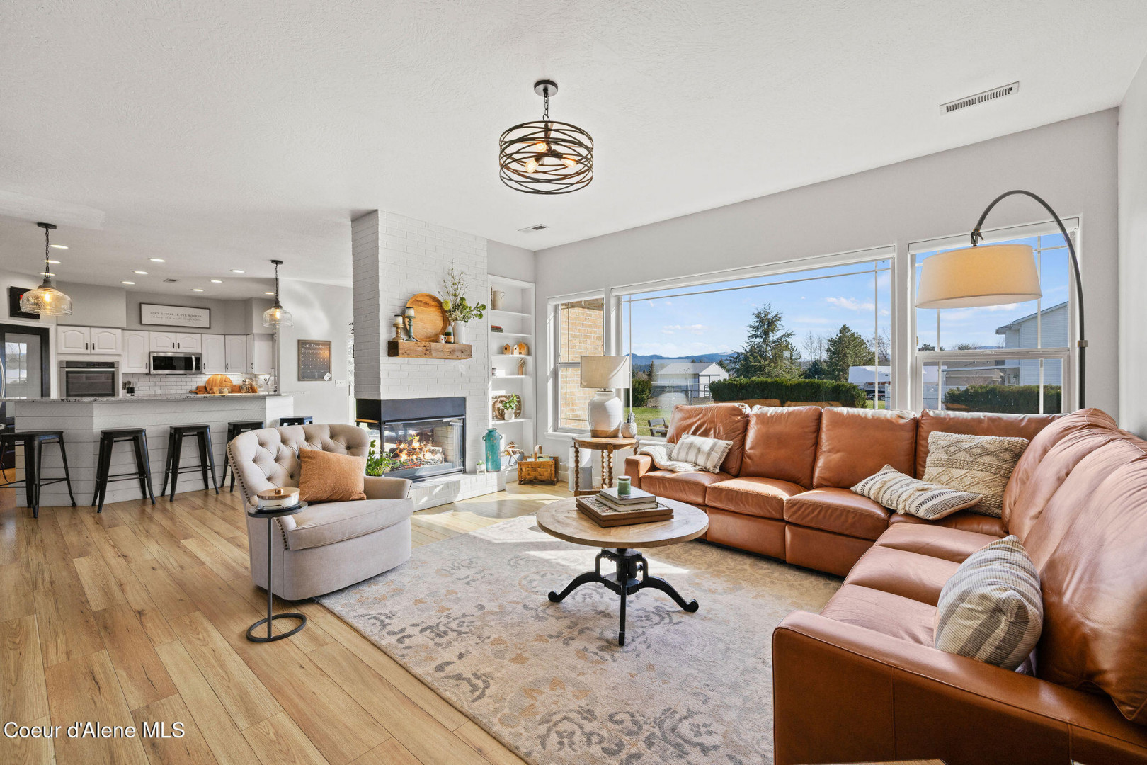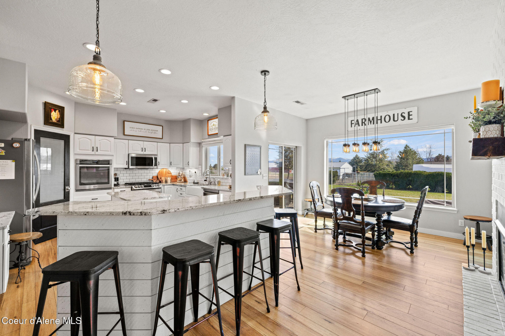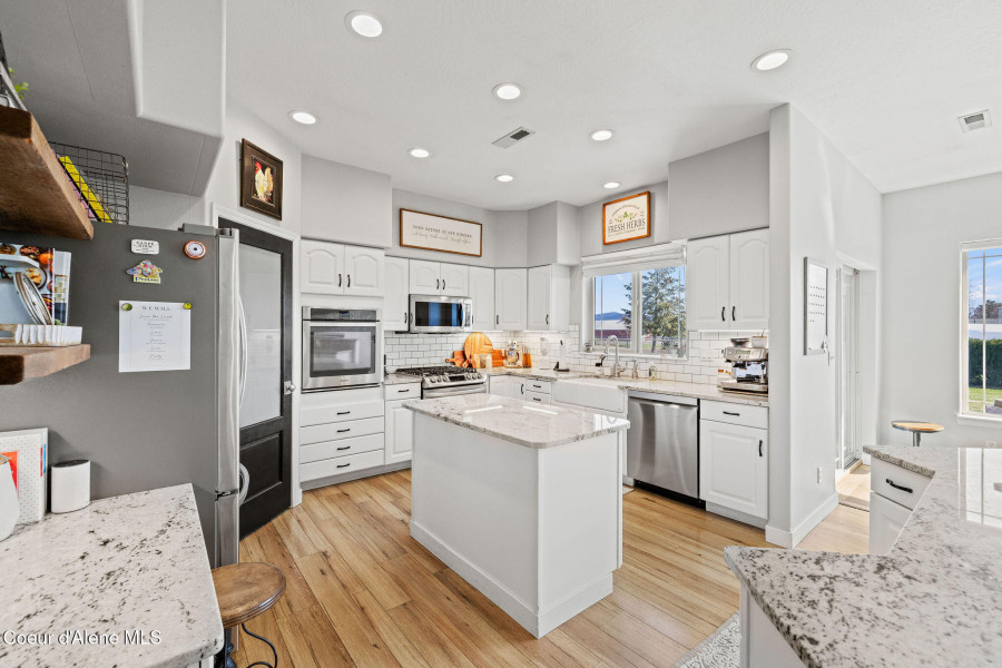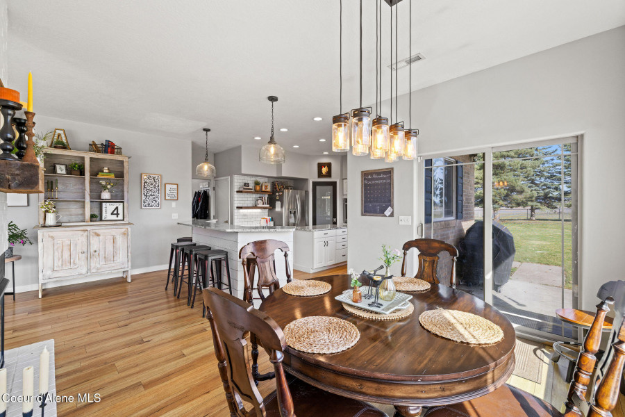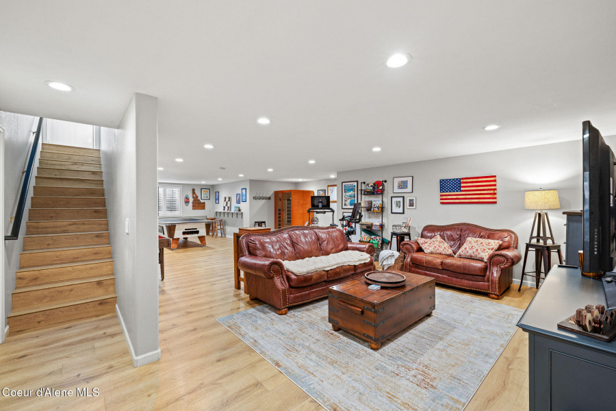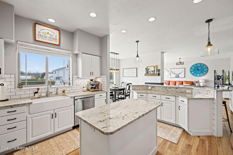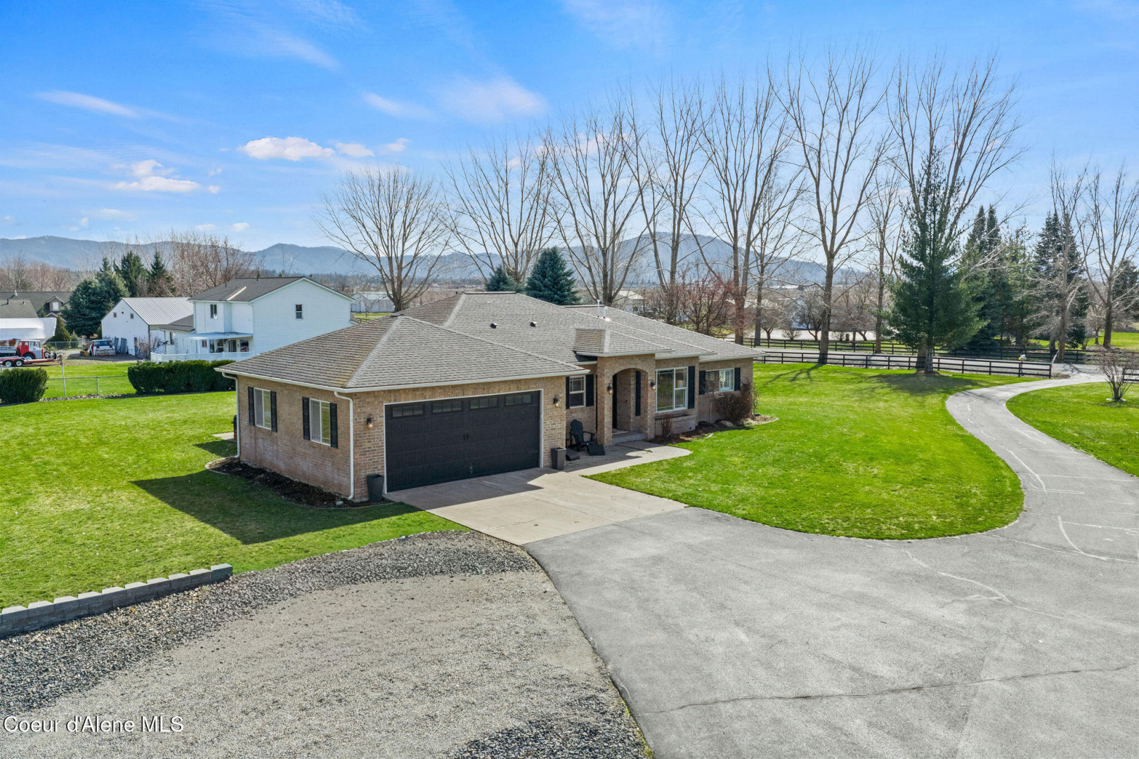 Beautifully remodeled home on nearly 5 acres with stunning mountain views and a shop -- offering the perfect blend of privacy and convenience. Just 6 minutes to Hayden and 2 minutes to Coeur d'Alene Airport, you truly get the best of North Idaho living. Designed for main-level living, this home features 3 bedrooms, 2.5 bathrooms, and a dedicated office. The spacious open kitchen includes double ovens and flows seamlessly into the living area highlighted by a double-sided gas fireplace. Comfort is maximized year-round with radiant heat, A/C, and automated blinds. The home was fully remodeled in 2018. The fully finished basement offers a massive family room complete with a pool table -- ideal for entertaining or relaxing. Outdoor living is exceptional with multiple gathering spaces: a firepit, above-ground pool with wraparound deck, pergola, outdoor bar, and hot tub -- all positioned to take in breathtaking sunsets and mountain views.