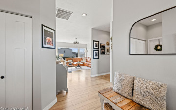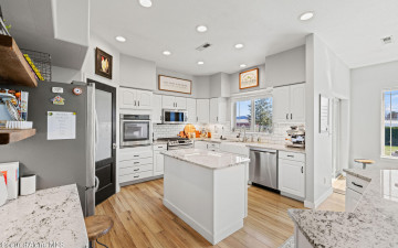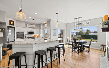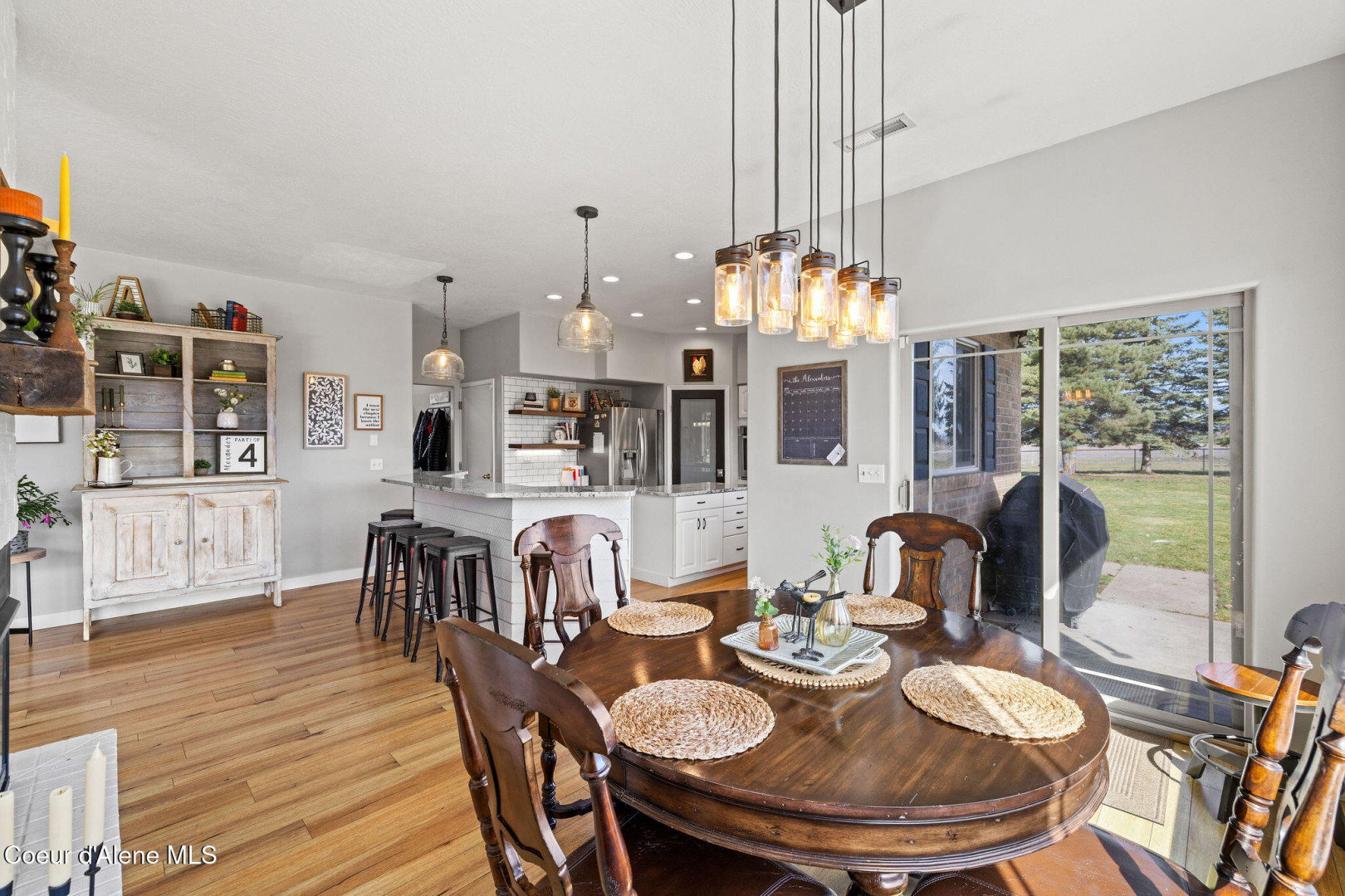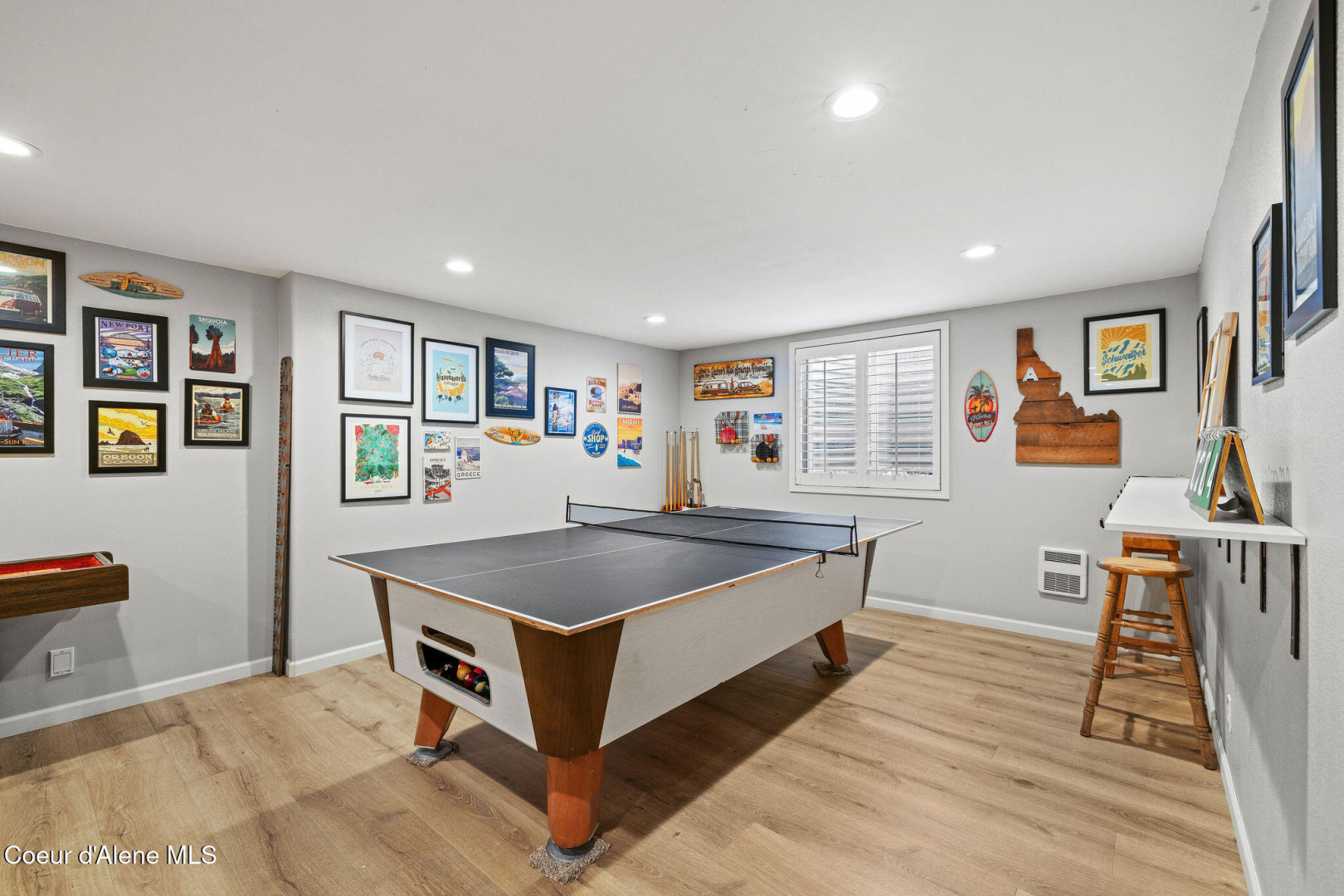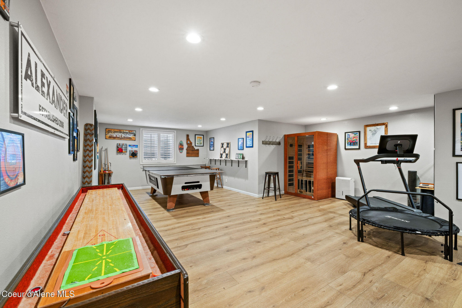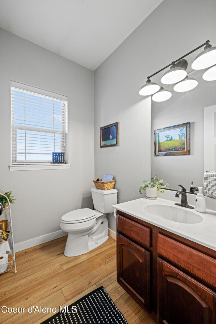 Beautifully remodeled home on nearly 5 acres with stunning mountain views and a shop -- offering the perfect blend of privacy and convenience. Just 6 minutes to Hayden and 2 minutes to Coeur d'Alene Airport, you truly get the best of North Idaho living. Designed for main-level living, this home features 3 bedrooms, 2.5 bathrooms, and a dedicated office. The spacious open kitchen includes double ovens and flows seamlessly into the living area highlighted by a double-sided gas fireplace. Comfort is maximized year-round with radiant heat, A/C, and automated blinds. The home was fully remodeled in 2018. The fully finished basement offers a massive family room complete with a pool table -- ideal for entertaining or relaxing. Outdoor living is exceptional with multiple gathering spaces: a firepit, above-ground pool with wraparound deck, pergola, outdoor bar, and hot tub -- all positioned to take in breathtaking sunsets and mountain views.