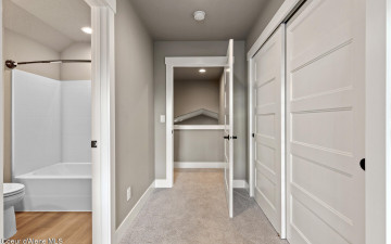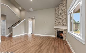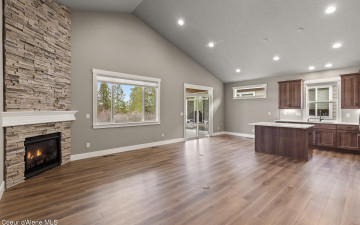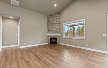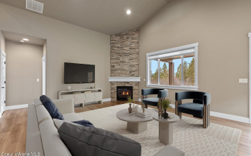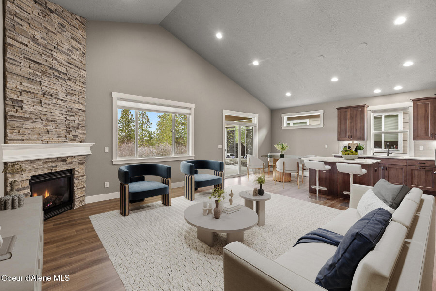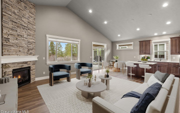 Welcome to the Trutina 55+ Community in beautiful Liberty Lake! This gorgeous 4-bedroom, 3-bathroom Cypress is a single-level living with a bonus room perfect for guests, craft room, or even a home theater. Step inside to a open-concept layout featuring a spacious kitchen, great room, and dining area--all made cozy with full height stacked stone gas fireplace. The great room opens to a covered back patio with views to the Spokane River and Centennial Trail, creating an inviting space to relax or entertain your guests. Your primary suite is a true retreat, complete with a fully tiled mud-set shower, double vanity, and generous closet. The beautifully landscaped yard is mowed by the HOA. Enjoy all the amenities just a short stroll away at Riverside Lodge, including a pool, fitness center, pickleball courts, social events, and lush community gardens.