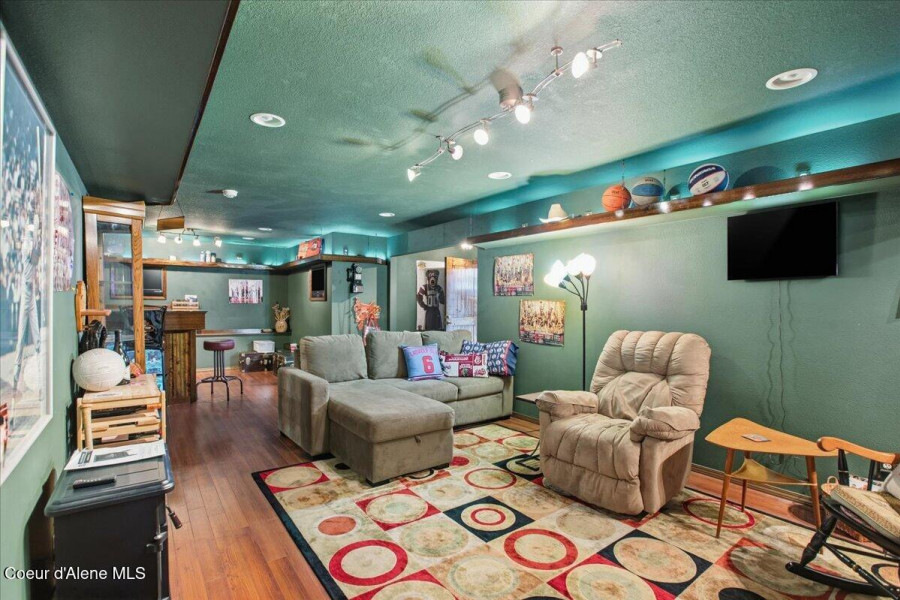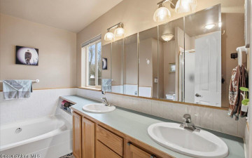 Beautiful 3 bed, 2.5 bath home in desirable Best Hill Meadows with outstanding views of Best Hill from the large deck right out the back door. This home features a covered and uncovered deck, covered patio and garden area with planters and garden shed. Inside, enjoy more mountain views, engineered hardwood floors, 2 sided gas fireplace, SS appliances, vaulted ceilings and a full sports lounge downstairs, complete with bar area, dishwasher, refrigerator, 4 built-in TVs, all included with the home. Adjacent to the lounge, enjoy your favorite movies and games in the built in theater, with large movie screen, raised seating area and surround sound speakers. Most appliances are included, freezer and additional garage refrigerator are negotiable. This unique home is a must see!