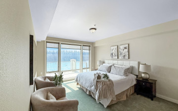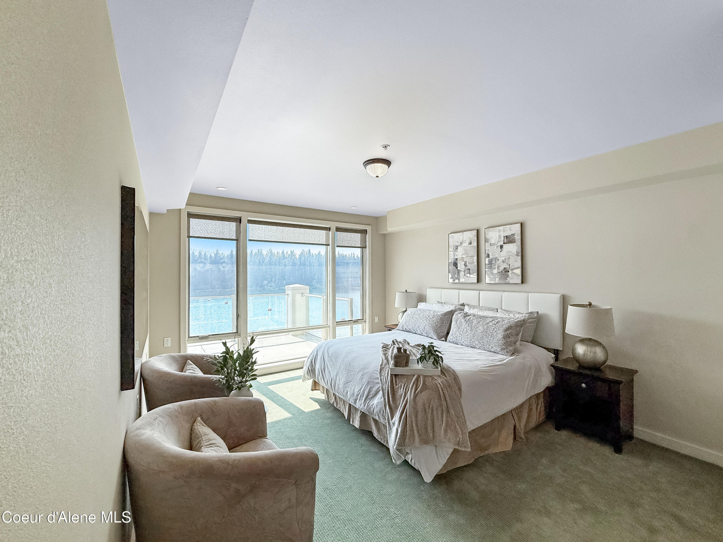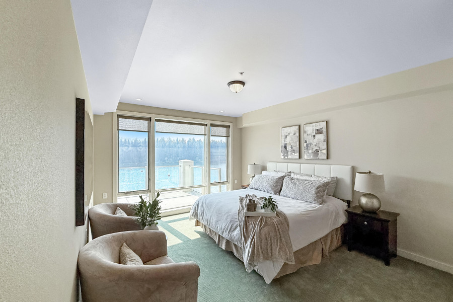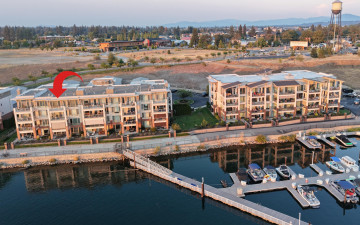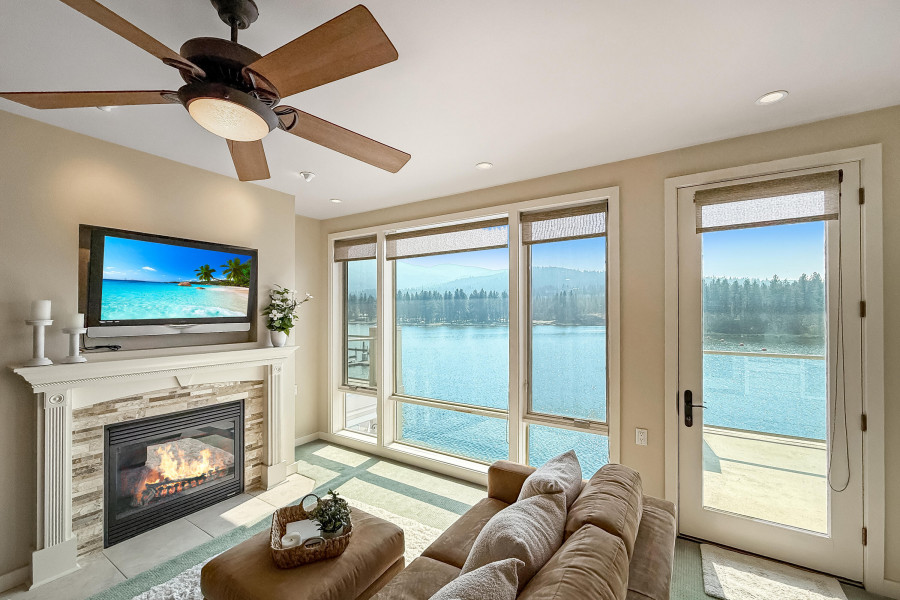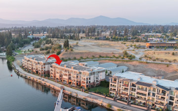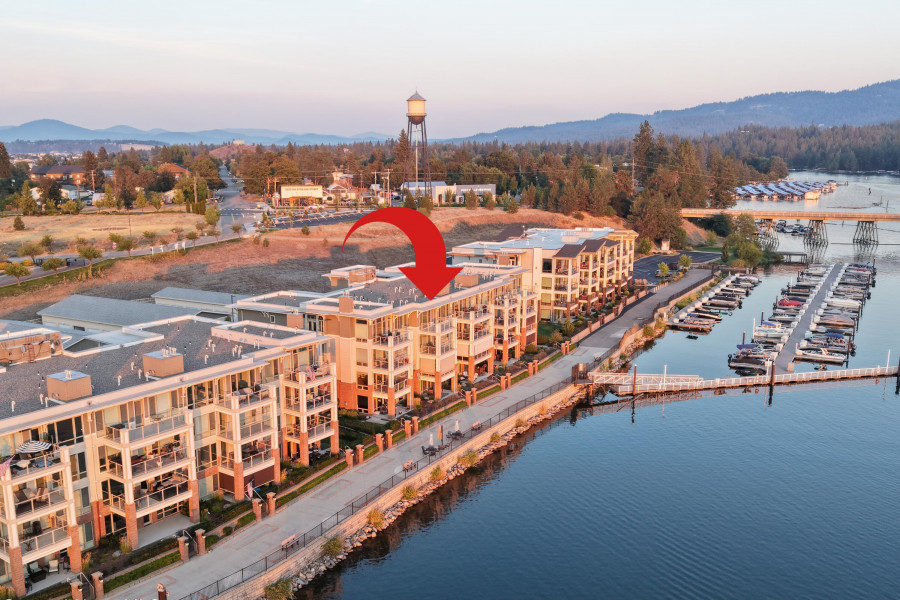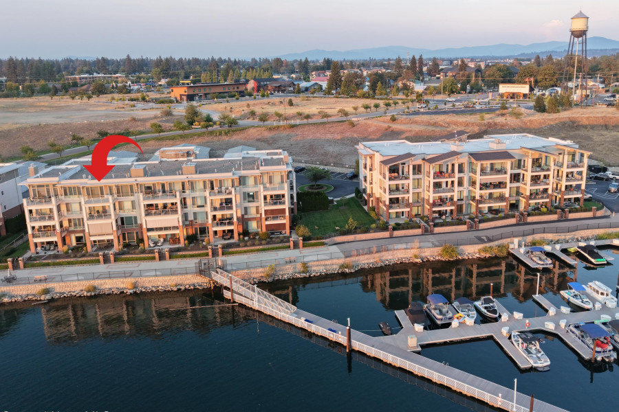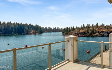 WOW! Rare Top Floor Condo Unit on the Spokane River with stunning views. This Luxury condo has windows from floor to ceiling which helps capture the views of the river, mountain and the sunsets. It also has granite counters, tile showers, soaking tub, gas fireplace, lights in closets and comes furnished. There is an unattached 12'x 23' one car garage. Located between Coeur d'Alene and Spokane make for easy commuting either direction. Nearby are restaurants, marina, shops and parks. Enjoy biking, hiking, boating and swimming. This unit is across the river from Q'emiln Park where there are acres of trails and a large beach area. This gated waterfront community offers low maintenance with the HOA dues covering water, sewer, garbage, landscaping and snow removal. Check out the chance for a great lifestyle in this Luxury Condo.
