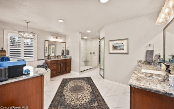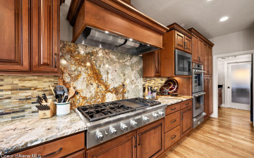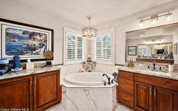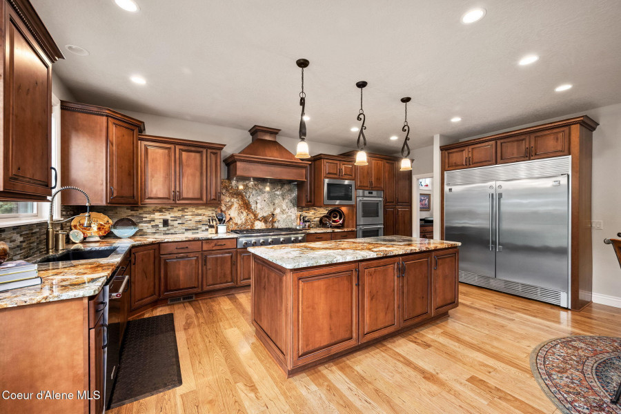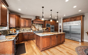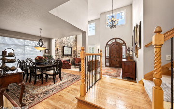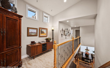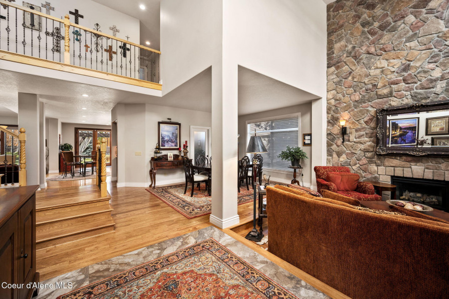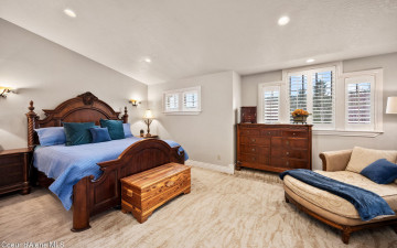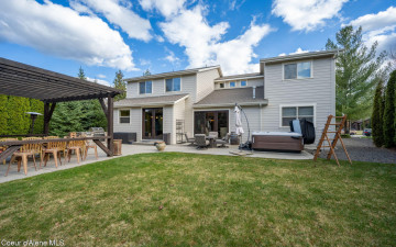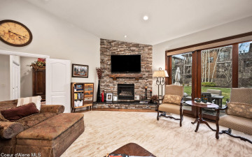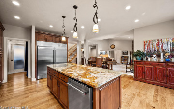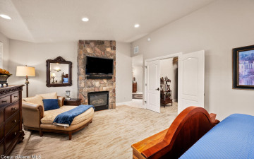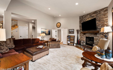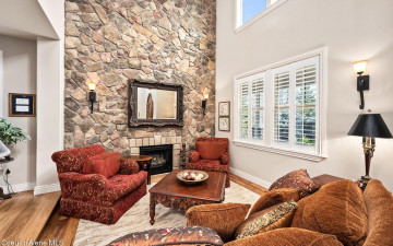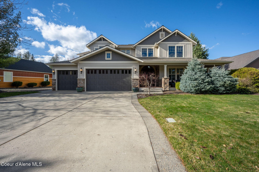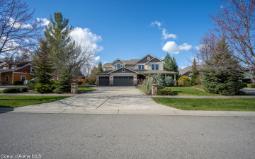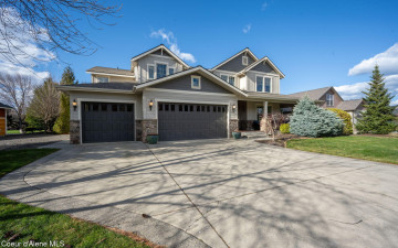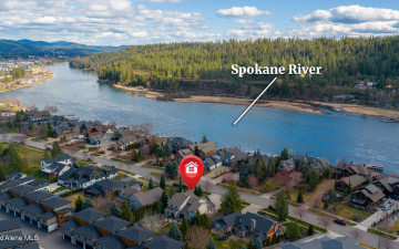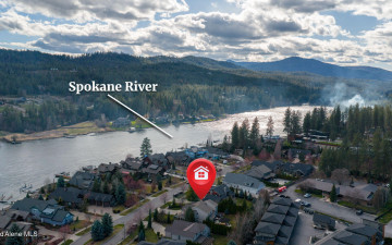 EDGEWATER AT MILL RIVER...fully remodeled 5BD/3BA home with 3,839sqft in a highly sought-after community. Enjoy private Spokane River beach access w/volleyball courts & sandy swim area. Set on a .39-acre lot w/mature landscaping, this custom home offers comfort & style throughout. The gourmet kitchen features a large granite island, stainless appliances, oversized double-door refrigerator, Thermador double ovens, 2 KitchenAid dishwashers, & a 6-burner cooktop. Main level includes a bedroom or den with ensuite, formal dining, breakfast nook, sitting room with floor-to-ceiling stone fireplace, & walk-in butler's pantry add to the home's functionality & charm. Upstairs features a primary suite w/fireplace, dual vanities, soaker tub, walk-in tile shower, & his-&-her closet, plus 3 bedrooms, bath, & laundry. Hickory floors, 3-car garage, wine fridge, & outdoor living w/built-in BBQ, water feature, hot tub, & firepit. This special property is turn-key & ready for you to call it HOME!