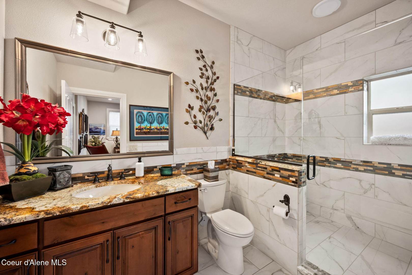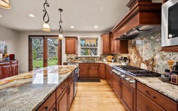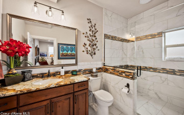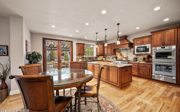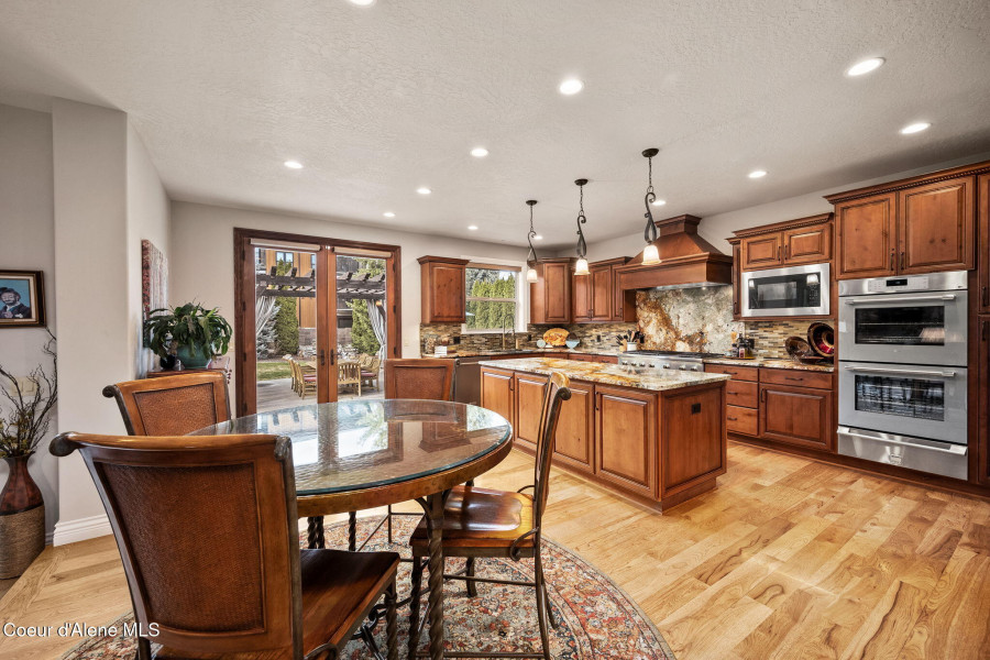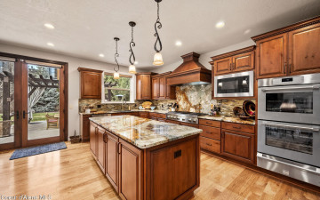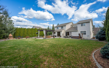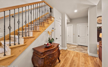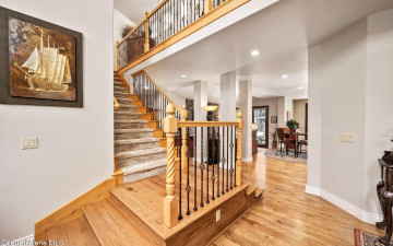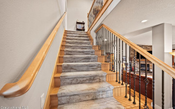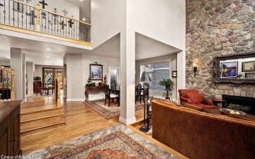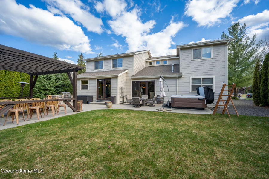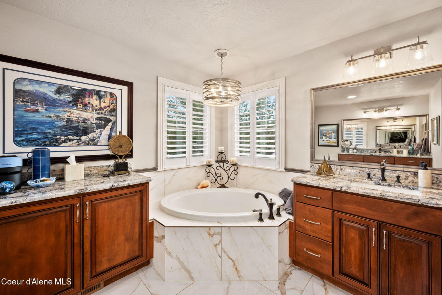 EDGEWATER AT MILL RIVER...fully remodeled 5BD/3BA home with 3,839sqft in a highly sought-after community. Enjoy private Spokane River beach access w/volleyball courts & sandy swim area. Set on a .39-acre lot w/mature landscaping, this custom home offers comfort & style throughout. The gourmet kitchen features a large granite island, stainless appliances, oversized double-door refrigerator, Thermador double ovens, 2 KitchenAid dishwashers, & a 6-burner cooktop. Main level includes a bedroom or den with ensuite, formal dining, breakfast nook, sitting room with floor-to-ceiling stone fireplace, & walk-in butler's pantry add to the home's functionality & charm. Upstairs features a primary suite w/fireplace, dual vanities, soaker tub, walk-in tile shower, & his-&-her closet, plus 3 bedrooms, bath, & laundry. Hickory floors, 3-car garage, wine fridge, & outdoor living w/built-in BBQ, water feature, hot tub, & firepit. This special property is turn-key & ready for you to call it HOME!
