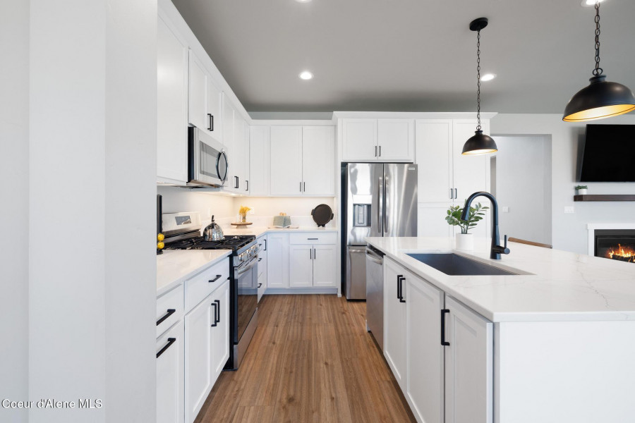Blue Tag Special! $10,000 builder incentives FLEX CASH on this highly sought after Plan 3! Base Camp is where you Embrace the North Idaho life! Minutes to Lake Pend Oreille, Schweitzer Mtn. Resort & all Sandpoint amenities. This home lives like a single story w/ a main floor primary bedroom & feels regal with the 8' doors and 9' ceilings throughout. The open floor plan is light, bright, & perfect for entertaining. Dedicated downstairs office & 3 generous size bdrms upstairs including a JR En Suite to suit multi family living or an upscale guest room. 2 full baths & laundry room w/ quartz counter, cabinets & a window with a view! Did I mention views of Schweitzer Mnt! Oversized bonus loft for the flex room you've always wanted. Fully fenced & front yard landscape. The perfect floor plan for all seasons of life! Bike, paddleboard, or kayak your way to downtown Sandpoint. For the Peace seekers to the adventurers, there is a lifestyle in Base Camp for everyone.