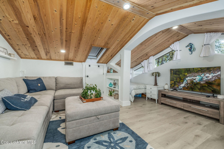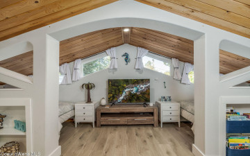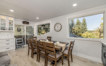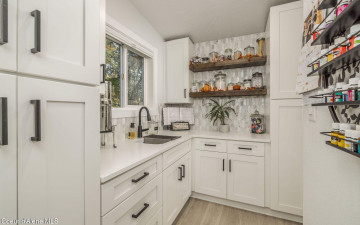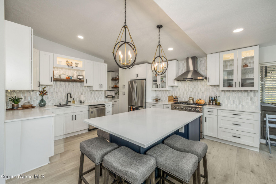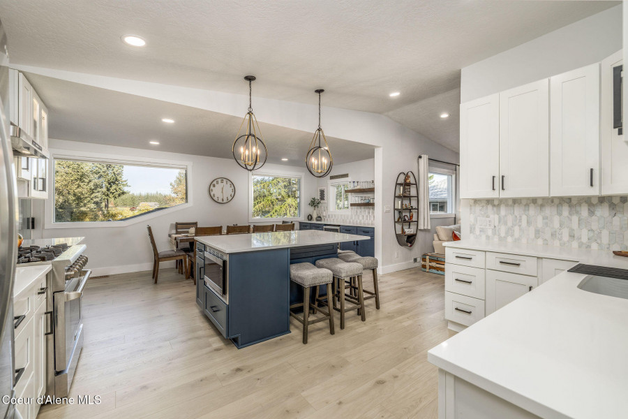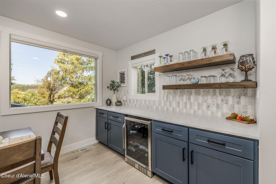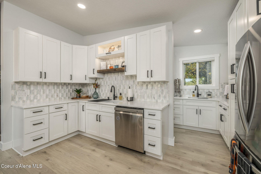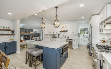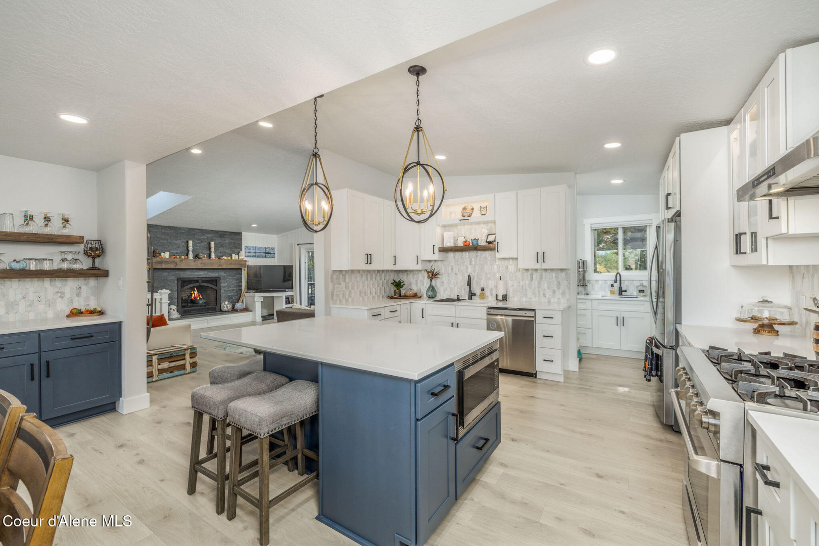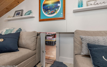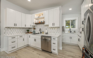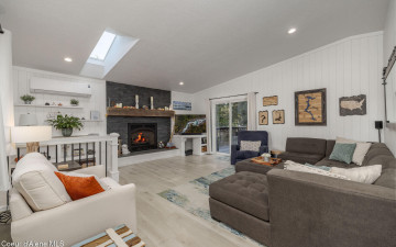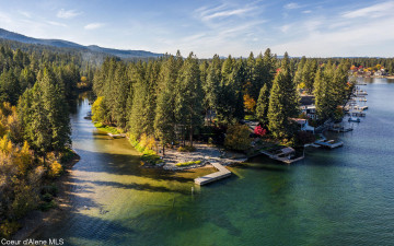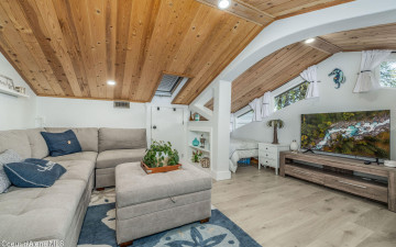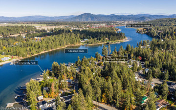 Discover your dream retreat on exclusive Harbor Island, just 10 minutes from the charming Coeur d'Alene downtown! This stunning move-in ready 3-bedroom, 2.5-bath home, plus a versatile flex room, provides an unparalleled secondary waterfront lifestyle just steps from the Spokane River, with two private beaches and boat docks, (one across the street), a private community boat launch, easy access for launching kayaks, fishing, fire pits, and large park-like gathering areas. Savor breathtaking water views from the front of the home and the serenity of a wooded backyard on the secluded deck. Inside, the fully remodeled home showcases a chef's kitchen with shaker-style cabinetry, pull-out drawers and trays, quartz countertops, a 6-burner gas stove, butler's pantry, custom-built shelving, and a wine bar.