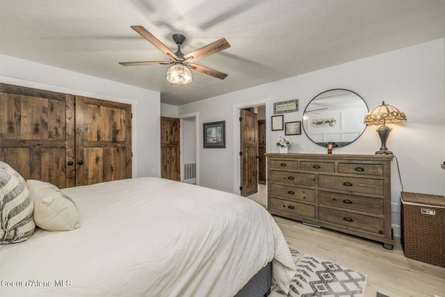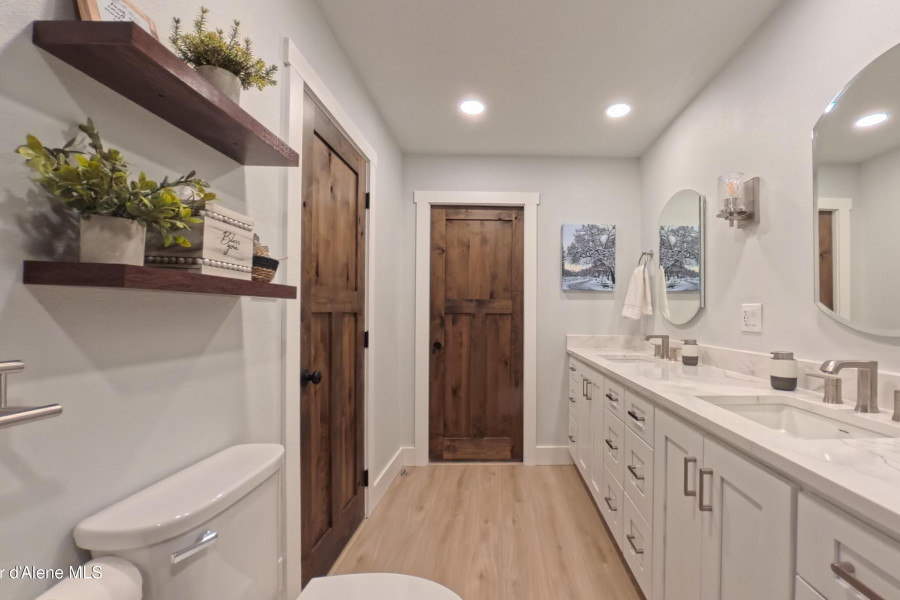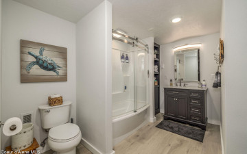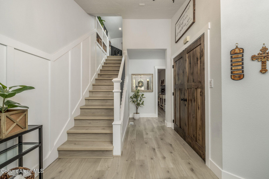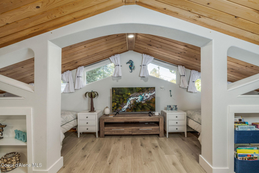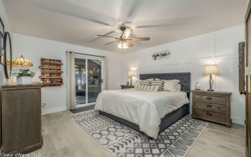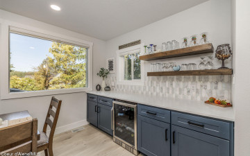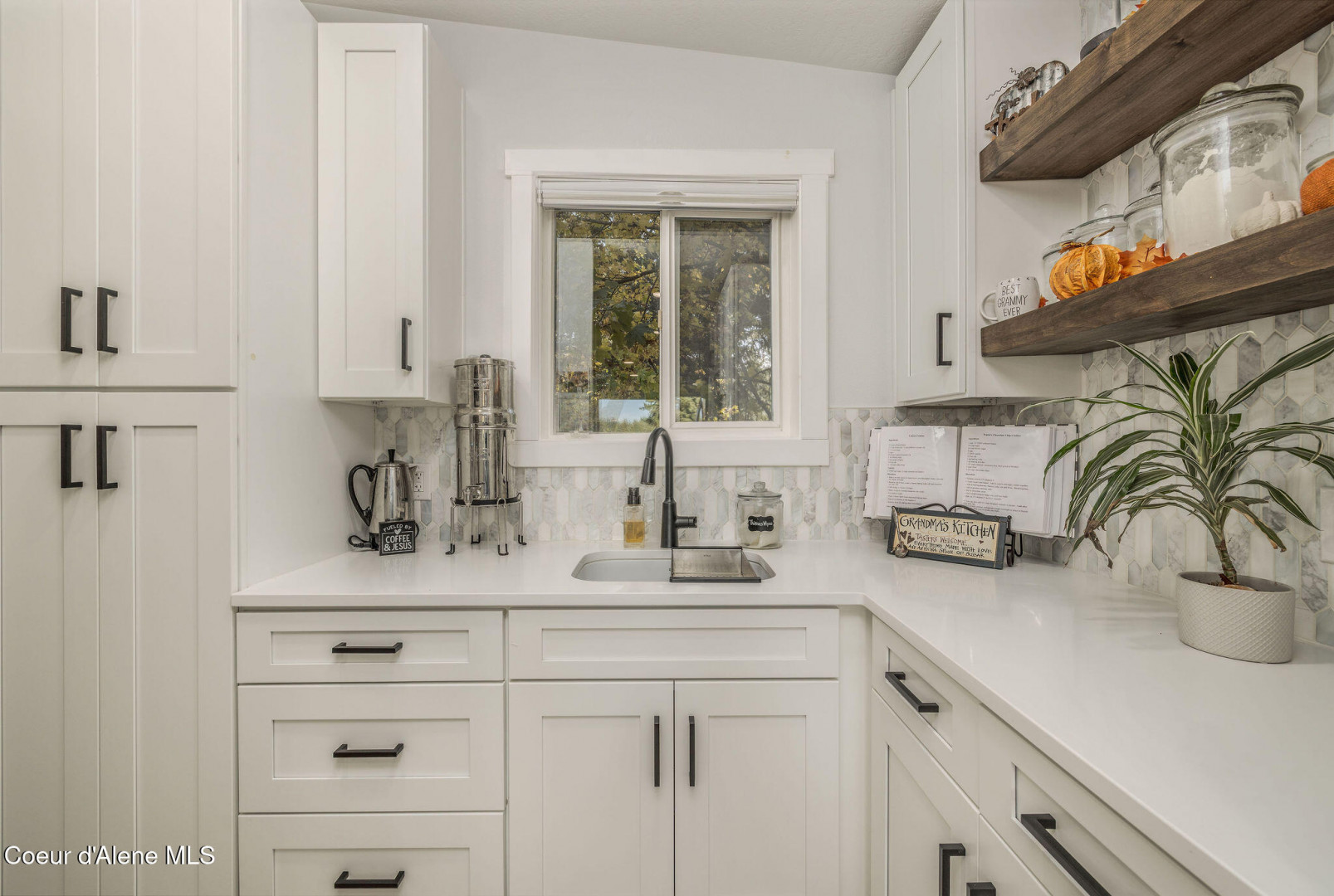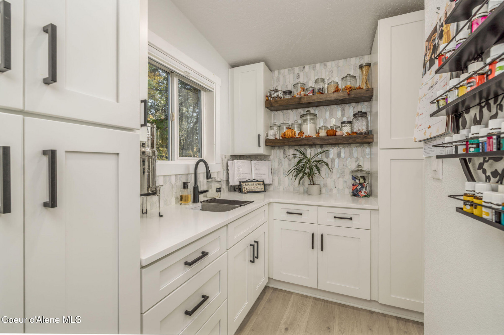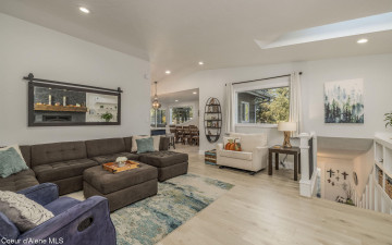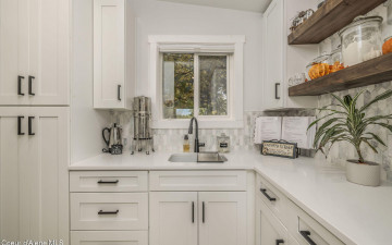 Discover your dream retreat on exclusive Harbor Island, just 10 minutes from the charming Coeur d'Alene downtown! This stunning move-in ready 3-bedroom, 2.5-bath home, plus a versatile flex room, provides an unparalleled secondary waterfront lifestyle just steps from the Spokane River, with two private beaches and boat docks, (one across the street), a private community boat launch, easy access for launching kayaks, fishing, fire pits, and large park-like gathering areas. Savor breathtaking water views from the front of the home and the serenity of a wooded backyard on the secluded deck. Inside, the fully remodeled home showcases a chef's kitchen with shaker-style cabinetry, pull-out drawers and trays, quartz countertops, a 6-burner gas stove, butler's pantry, custom-built shelving, and a wine bar.
