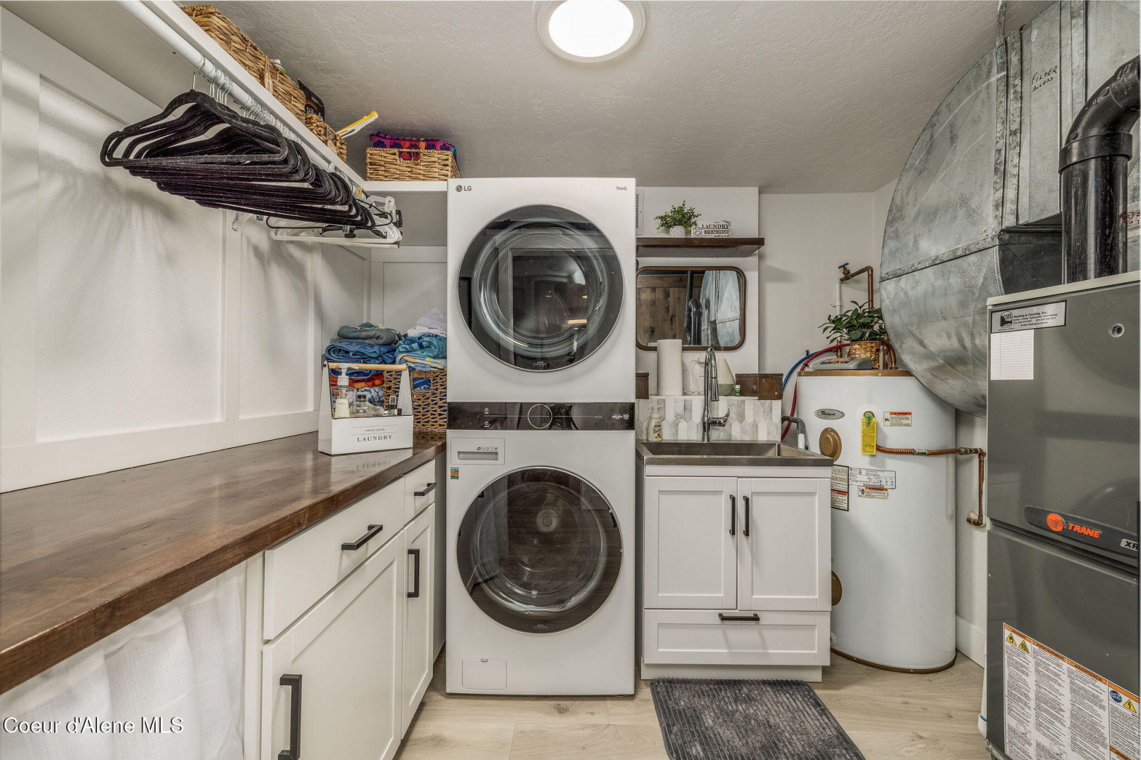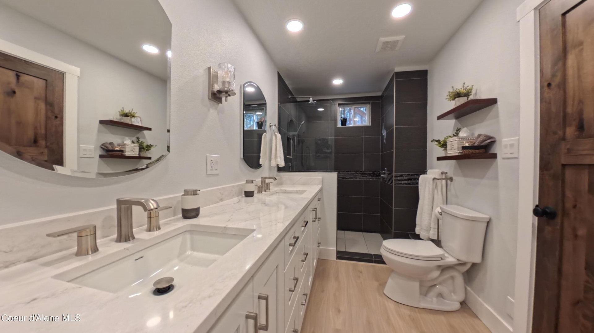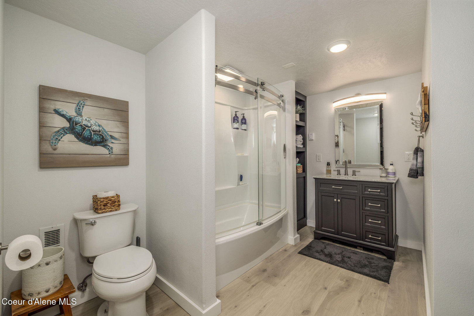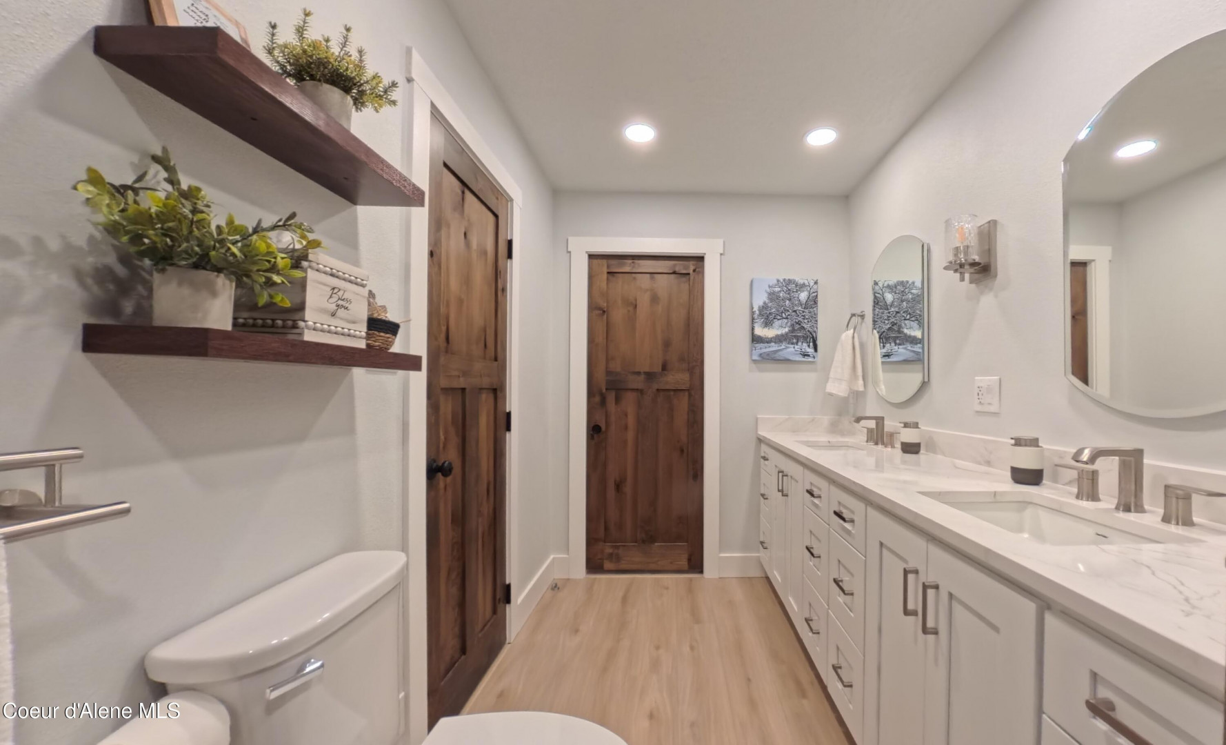 Discover your dream retreat on exclusive Harbor Island, just 10 minutes from the charming Coeur d'Alene downtown! This stunning move-in ready 3-bedroom, 2.5-bath home, plus a versatile flex room, provides an unparalleled secondary waterfront lifestyle just steps from the Spokane River, with two private beaches and boat docks, (one across the street), a private community boat launch, easy access for launching kayaks, fishing, fire pits, and large park-like gathering areas. Savor breathtaking water views from the front of the home and the serenity of a wooded backyard on the secluded deck. Inside, the fully remodeled home showcases a chef's kitchen with shaker-style cabinetry, pull-out drawers and trays, quartz countertops, a 6-burner gas stove, butler's pantry, custom-built shelving, and a wine bar.