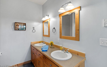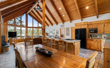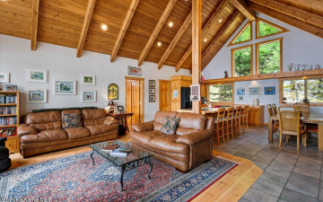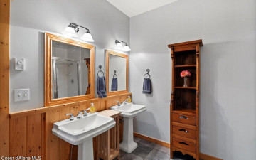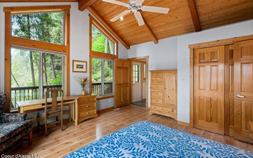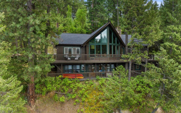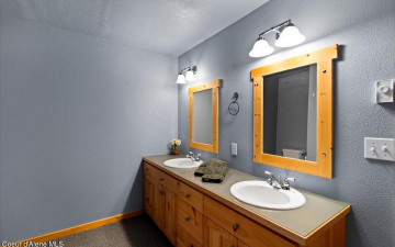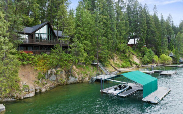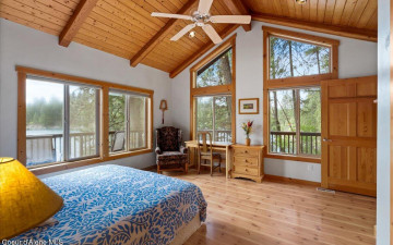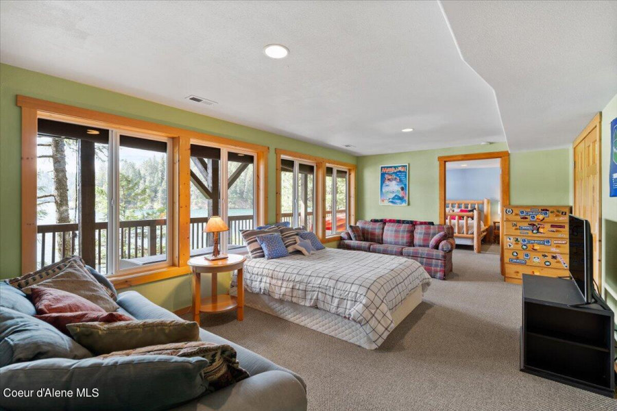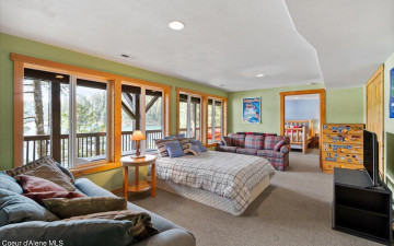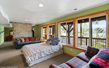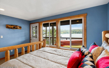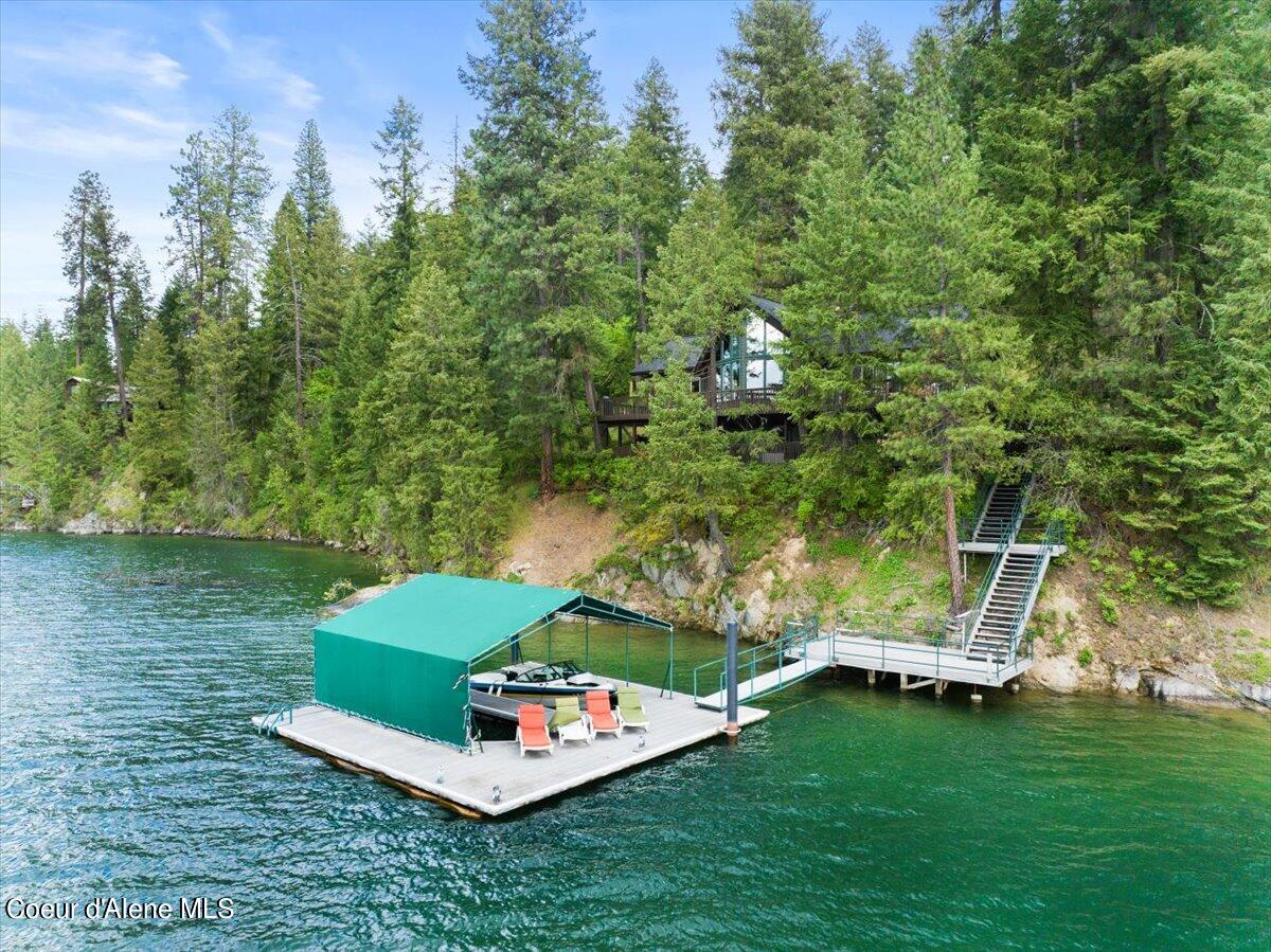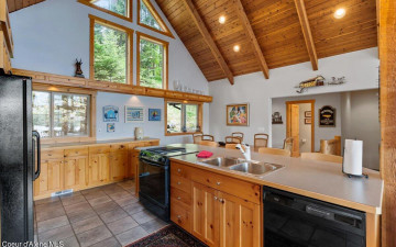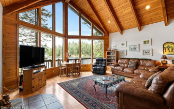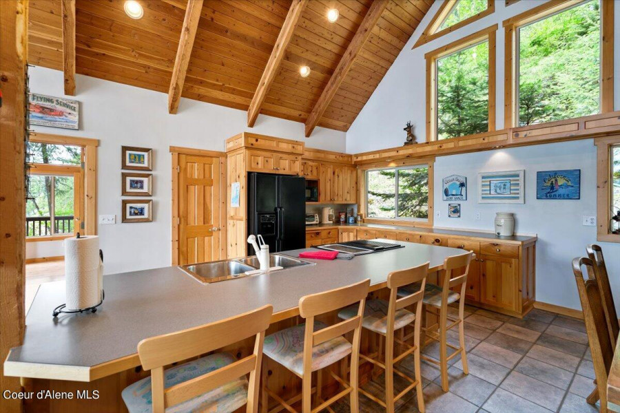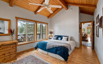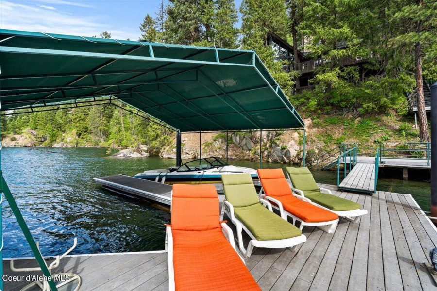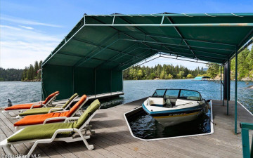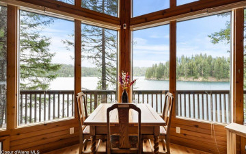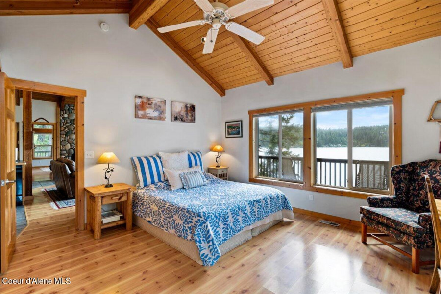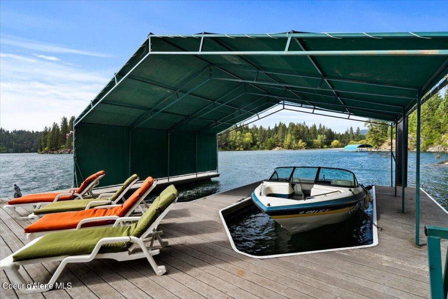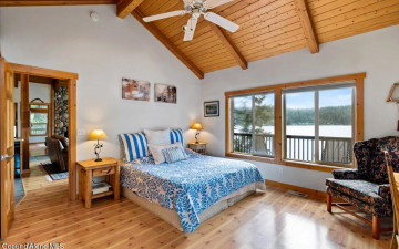 Spectacular Privacy & Comfort on Hayden Lake. Introducing the ultimate Hayden Lake waterfront cabin! Magnificent views. Incredible privacy. 100 ft of deep waterfront, with double-slip dock and steps to your own private swimming area. This beautifully maintained 2740 sf chalet-style home features sweeping views, expansive windows, cathedral ceilings, wood beams & stone fireplace. Two lakeside primary suites, each with full bath, are situated on the main level. The lower-level family/bunk room offers loads of sleeping options, as well as a 3rd full bath. The desirable western exposure ensures extended days lounging in the sun, enjoying endless recreation, relaxation & spectacular sunsets! Fully furnished & totally turnkey, including ski boat, kayaks, wakeboards, toys & tools galore!