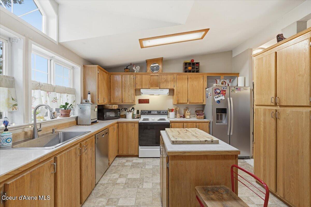 This spacious home stands out with a feel more commonly found in a site built home. The skylights offer abundant natural light and, coupled with the excellent layout, they create a welcoming, open atmosphere throughout. Situated in a desirable Hayden location, this property enjoys both convenience and beauty close to shopping, parks, trails, and more, while still offering a sense of privacy and space. A great opportunity for any buyer. Come and See!