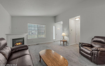 Low-maintenance living in Post Falls! This beautiful 3-bedroom condo features a spacious primary suite and an open kitchen with granite countertops, breakfast bar, and appliances included. Enjoy cozy evenings by the gas fireplace and year-round comfort with central air. Additional highlights include fresh interior paint, newer gas furnace, private patio, finished attached garage.